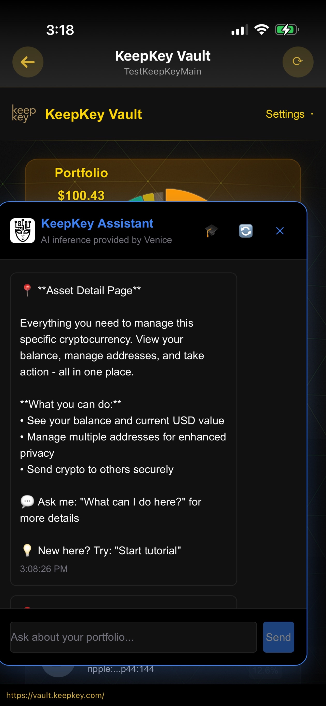 - Done. The mobile app can now fetch your portfolio, balances, and addresses from the paired desktop session.